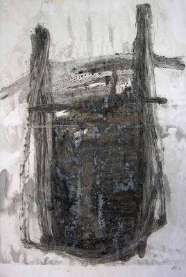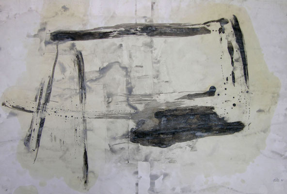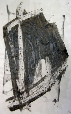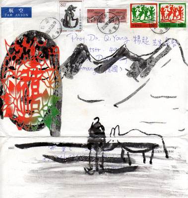 Das interessante an den Werken von Qi Yang in diesen Jahren ist ihre permanente Auseinandersetzung mit zwei malerischen Konzepten, die sich ebenso widersprechen wie gleichermaßen auch entsprechen. Die chinesische Tuschmalerei – vor allem, wenn sie aus der Kalligraphie heraus entwickelt ist – erfordert bereits einen hohen Grad an Abstraktion. Der große Einfluss, den der Zen-Buddhismus genommen hat und der seinerseits auch die Künstler Europas nach dem Zweiten Weltkrieg erreicht hat, findet seinen unmittelbaren Widerhall in der abstrakten Malerei und in der chinesischen Tuschmalerei wie auch im Informell. Qi Yang setzt hier an und erweitert diesen in zweierlei Hinsicht: er unternimmt eine Verbindung zwischen der künstlerischen Ausfassung Chinas und Europas sowie zugleich mit der Frage nach Abstraktion und Figuration. Indem er Materialien in seine Malerei integriert, schließt er zwar an die großen Künstler wie Hoehme und Schumacher an, zugleich aber auch in die Frage nach der Figuration, nach der Rückanbindung an die reale Lebenswelt.